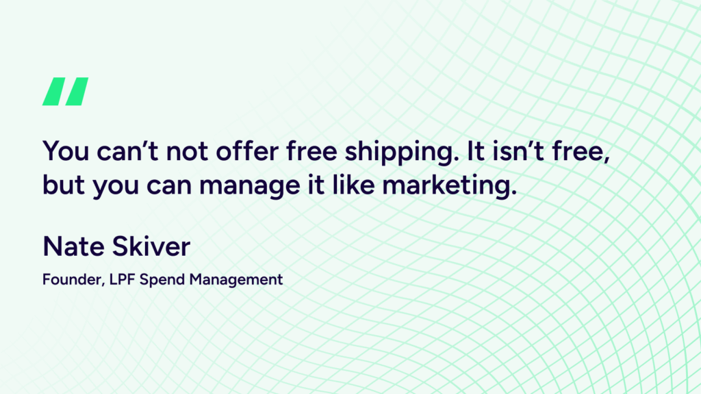 Nate: “You can’t not offer free shipping. It isn’t free, but you can manage it like marketing.” He’s dead right. Most brands treat shipping like a janitorial expense. Instead, it should be sitting in the marketing budget with bold red ink and strategy wrapped around it. This is how commitment to ROI is obtained. Shipping needs this type of investment. 41% of consumers said that delivery cost factors into their purchase decision, according to Shipstation.