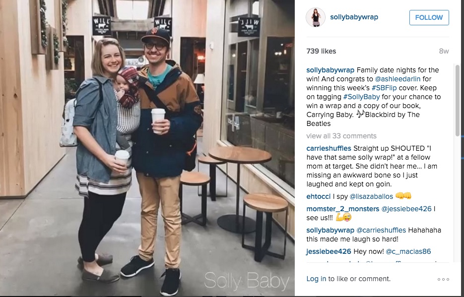 Have you noticed that professionally produced photographs of clothing products typically feature models who don’t look anything like your customers? By showing real customers on product pages, companies have increased conversions by as much as 30 percent. It’s a matter of social proof – the fact that people tend toward conformity. Seeing other people using your products shows consumers that other people desire your products and increases customers’ confidence in making that purchase. One company that is successfully doing this to increase eCommerce sales with Instagram is ShipStation customer Solly Baby, a baby wrap company and Instagram powerhouse: