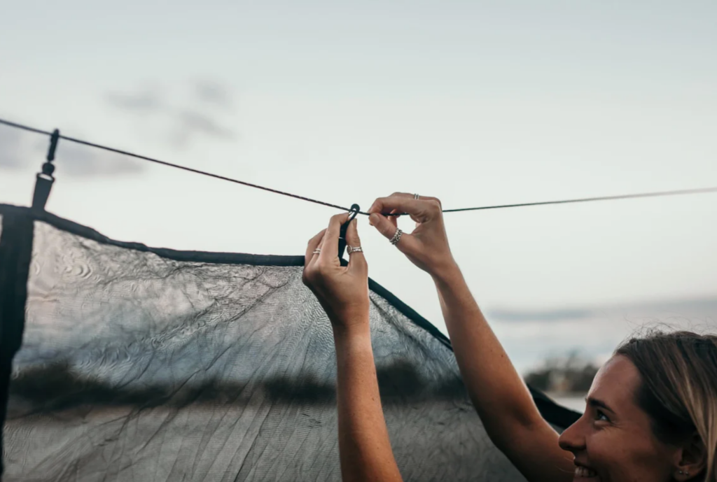 “My wife came up with the idea of a hammock made of recycled plastic bottles, to stop them from ending up in landfill and into the waterways,” says Dean.