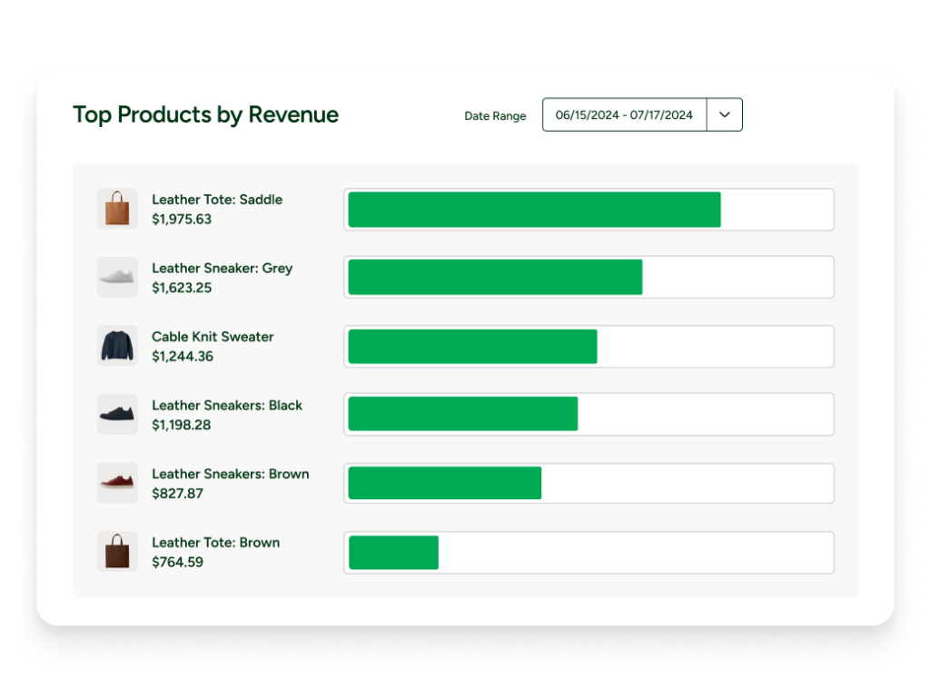 Analyze sales trends, identify top sellers, and track revenue and performance across channels.