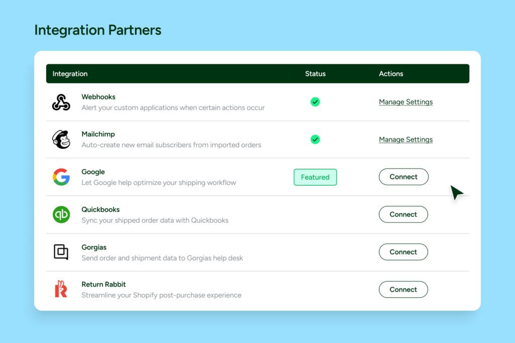 Manage fulfillment with the shipping platform that plugs into every selling channel, carrier, marketplace, ERP, ecommerce tool, and anything else your business touches.
